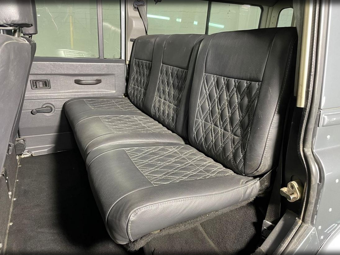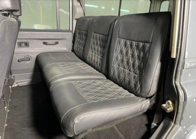 On offer is this Land Rover 2.5L TDI which has been fully restored, top to bottom. Dressed in a grey exterior to match the black interior gives this Landy the showing off power it deserves. With the new interior diamond stitched and the upgraded sound system the cabin of this Defender has the look and feel of elegancy and adventure. Fitted with a Razorback roof rack, side awning and brush guard winch this defender is sure to make traveling a dream and can very easily assist you and your friends out of a muddy situation.